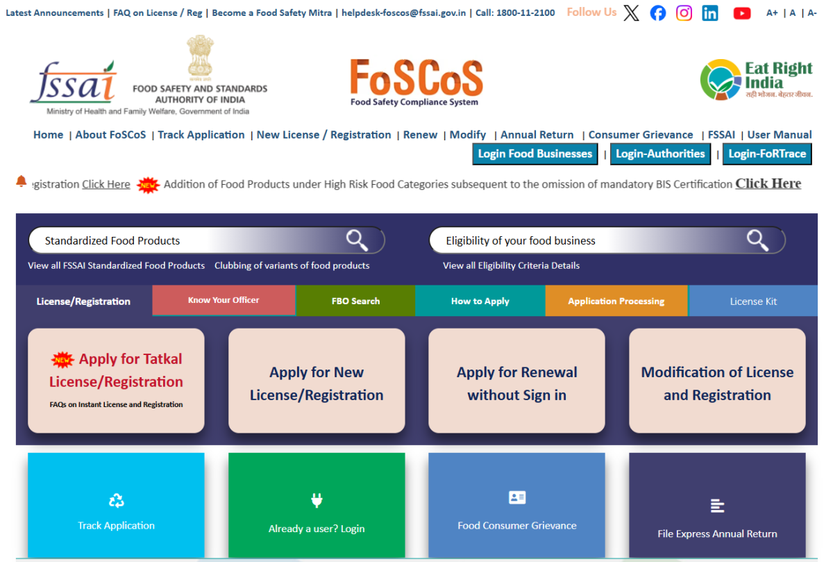 - Access the online FSSAI portal (https://foscos.fssai.gov.in).